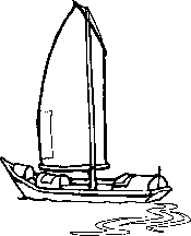 The dhow’s sails are made of bamboo slats or on rare occasions silk. They can be adjusted inward to the ship’s main axis, allowing these craft to sail into the wind. Each sail is composed of multiple battens, which add strength, each with its own line, giving greater control. As well, tears can’t spread farther than a batten, making the sails more resilient.