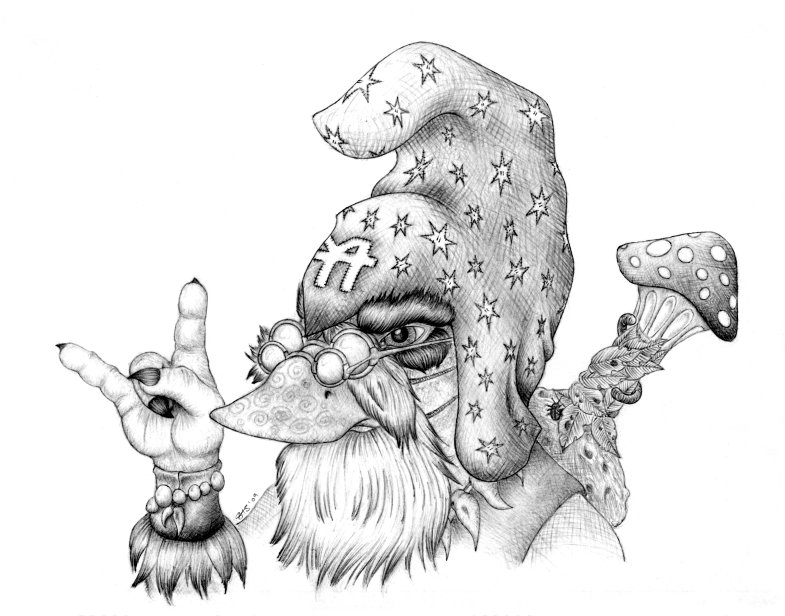 ) tattooed across his beak. His main deity, of course, is Lhankor Mhy. Orlanth's lorekeeper is known for dabbling in the spellbooks of ancient Western sorcerers, and his Grey Sages across the lozenge are no exception. This drake is obviously a wizard, as he's wearing a hat with stars on it.